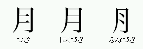 左からつき、にくづき(肉月)、ふなづき(舟月)と呼ばれます。